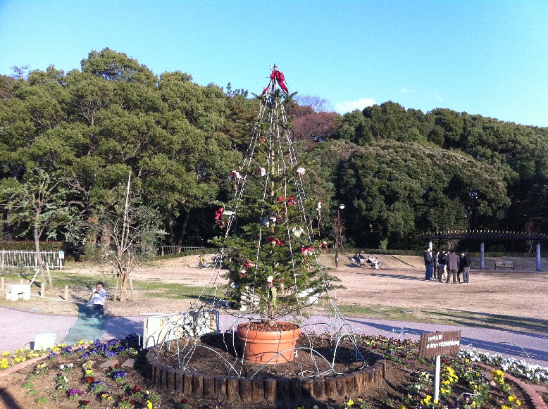 講座の後は、原宿門の近くオリンピック宿舎前のツリーへ移動。