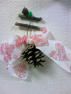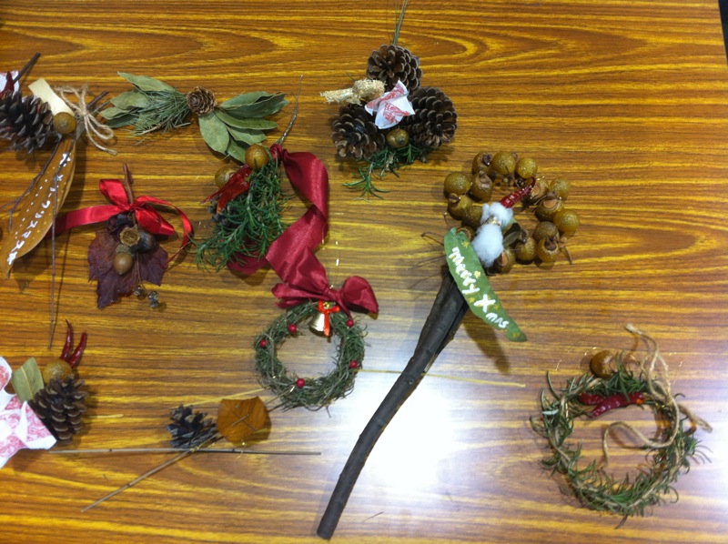 松ぼっくりや枝、木の実など)でオーナメントの製作をします。